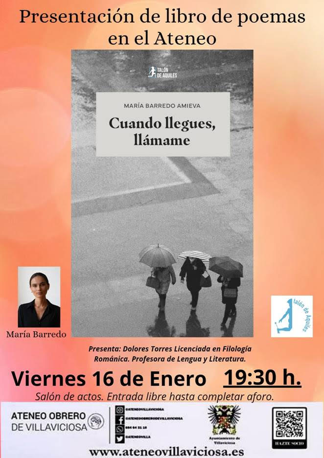 El Viernes 16 de Enero a las 19:30 h en el Salón de Actos del Ateneo Obrero tuvo lugar la presentación del libro de poemas, “Cuando llegues llámame” de María Barredo.